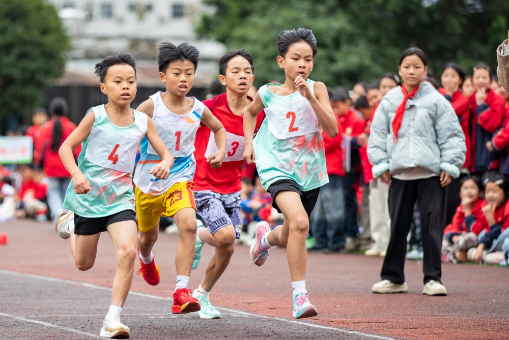 11月12日,从江县刚边壮族乡中心小学学生在校园运动会上参加中长跑比赛。2025年11月12日,从江县刚边壮族乡中心小学举行冬季校园运动会,学生们积极参加多个体育竞技项目比赛,尽享运动带来的乐趣。近年来,从江县深入推进“体育+”育人工程,组织各中小学开展丰富多彩的校园体育活动,让学生们在体育运动中愉悦身心、增强体质、磨炼意志,助力健康成长。
