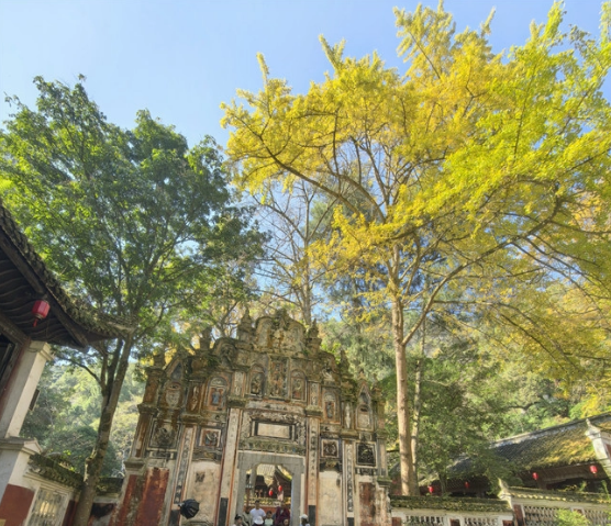 据当地游客分享,飞云崖银杏的最佳观赏期在11月中旬,金黄的银杏叶与古建筑的红墙黛瓦相映成趣,构成一幅古朴而绚丽的冬日画卷。11月12日,黄平县飞云崖景区的银杏如期披上“金装”,进入一年中最绚烂的观赏期。”飞云崖的古建筑群始建于明朝正统八年(1443年),已有近600年历史。