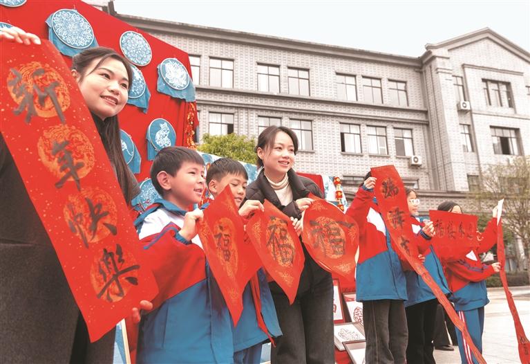 活动现场,红灯笼、春联、福字等装饰洋溢着喜庆的新年气息,精彩的文艺节目、传统民俗表演、丰富的美食盛宴穿插其中,孩子们沉浸式感受中国传统年俗的魅力,在欢乐、轻松的氛围中迎接即将到来的2026年。