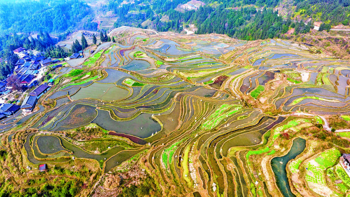 贵州从江:冬日梯田云雾缭绕 乡村画卷如诗如画