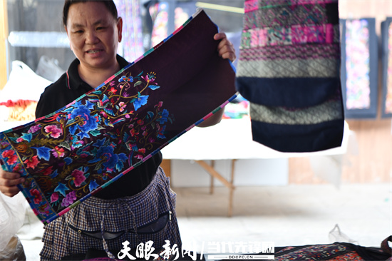 苗绣技艺的传承,不仅需要热爱,更需要年轻一代的接力。每逢赶场天,龙光莲的摊子总是围满绣娘。从小受“无银不成盛装,无花不成姑娘”的熏陶,龙光莲跟长辈学习非物质文化遗产苗绣技艺,尤其擅长绣花线配色,在业内小有名气。
