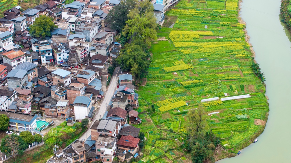当日,贵州省黔东南苗族侗族自治州从江县加勉乡别通苗寨的梯田在冬日阳光下层层铺展,与古朴村寨、苍翠青山和蜿蜒公路相互映衬,宛如一幅诗意盎然的田园画卷。12月11日,在贵州省从江县加勉乡别通苗寨拍摄的梯田风光(无人机照片)。