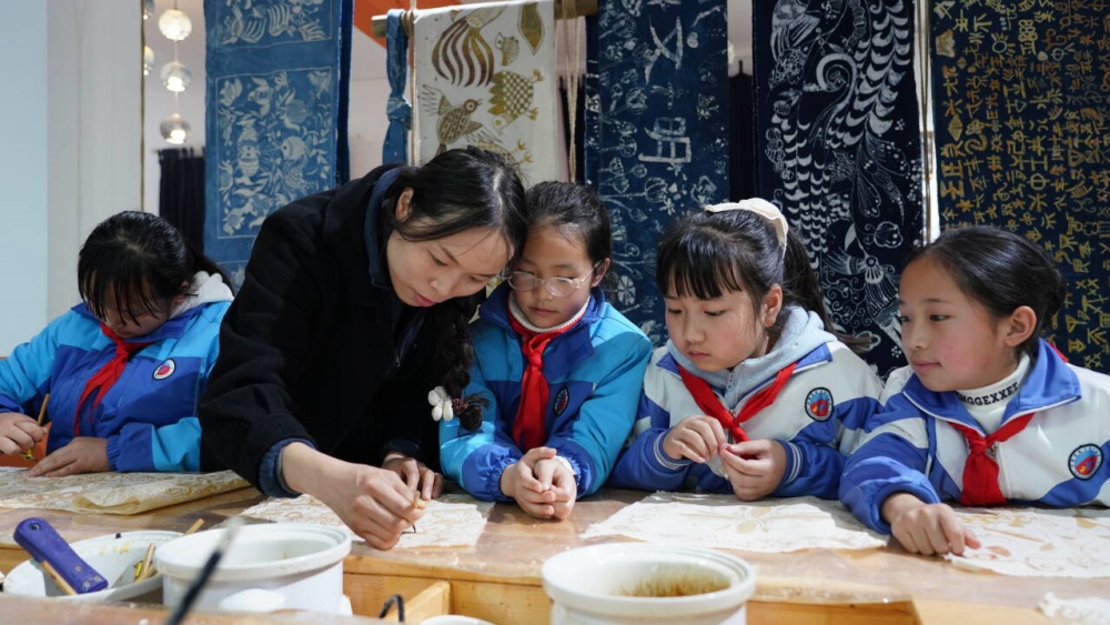 春假第一天,丹寨县扬武民族小学的学生们在学校的美术教室里忙活开来,孩子们用水彩笔在风筝纸张上天马行空,随心作画,不一会儿,小鱼、蝴蝶等一个个生动可爱,童趣十足的图案逐渐成型。据了解,春假期间,丹寨县还将开展上春山、采春茶、寻春食等活动,让学生在丰富多彩的实践中传承文化、收获快乐与成长。作为素有“非遗之乡”之称的丹寨,拥有丰富灿烂的民族文化,丹寨县城关第一小学则依托这一丰厚的“家底”,利用假期,为学生开启了独具特色的非遗“小课堂”,孩子们在传承人的指导下,手持蜡刀,勾勒纹样,并用刚刚摘来的新鲜植物进行拓印点缀,一沾一点之间,古老的苗族蜡染技艺不知不觉缓缓流淌进了孩子们的世界。