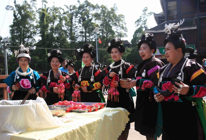 当日,贵州省黔东南苗族侗族自治州从江县加勉乡加模苗寨的苗族同胞吹芦笙、跳芦笙舞、抬猪笼,载歌载舞欢庆鼓藏节。12月10日,在贵州省从江县加勉乡加模苗寨,人们参加鼓藏节活动。鼓藏节是苗族传统节日,2006年被列入第一批国家级非物质文化遗产名录。