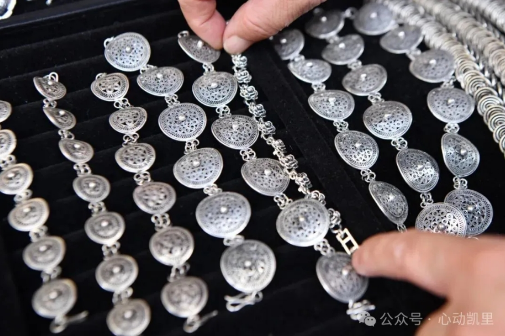 “手工的温度是机器无法复制的。”摊主刘福英坚守纯手工制作绣品,拒绝机绣冒充,并向游客郑重承诺:“假一罚万”。凯里市“绣里淘”非遗集市通过文旅融合创新模式,为传统手工艺注入了全新活力,已成为推动凯里文化传承与经济发展的引擎典范。今年,凯里市更以“村T+绣里淘”模式吸引海内外游客数万人次,成功带动700余家商户增收。非遗产品年销售额预计突破亿元,蜡染、苗绣、银饰等超过6000种非遗产品销往全球。