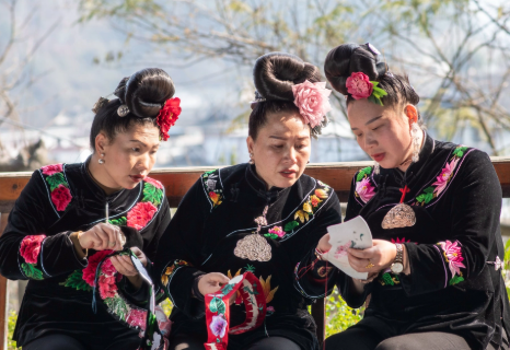 11月28日,雷山县的一处苗绣工坊,州级非遗代表性传承人杨阿妮正飞针走线,正值雷山苗年节,来自各村寨的苗族服饰订单络绎不绝。杨阿妮说,每年她都会设计新的风格、样式,满足不同顾客需求。