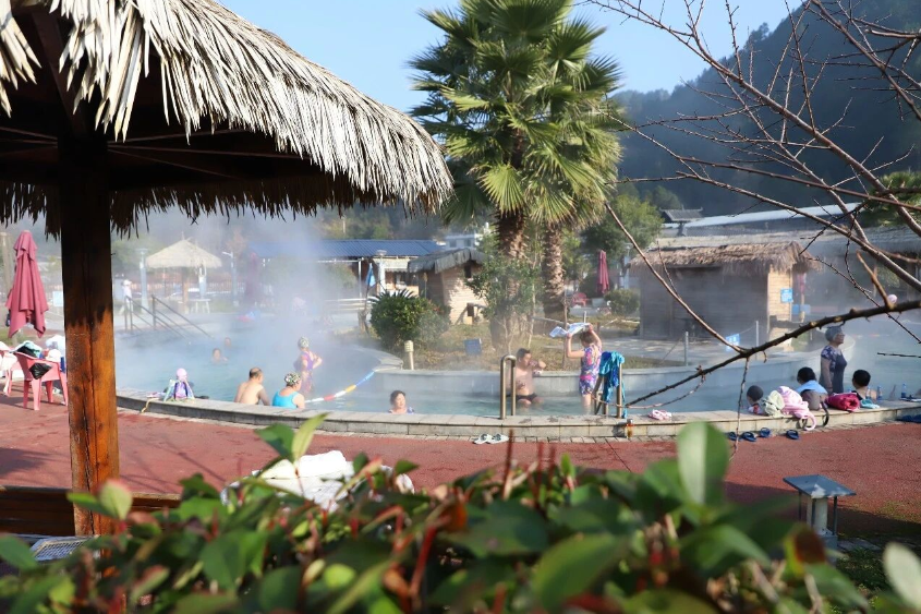寒梅映剑河,暗香浮动间,为冬日添满生机。”一位刚从温泉小镇出来的贵阳游客刘女士裹着厚外套笑道,“泡完温泉浑身暖烘烘的,再来看这盛放的红梅,又香又好看,随手一拍都是美景,这趟剑河之行太惬意了。在剑河仰阿莎温泉小镇1号路,成片红梅簇拥成海,浅浅粉红漫卷如霞,于寒风中摇曳生姿。
