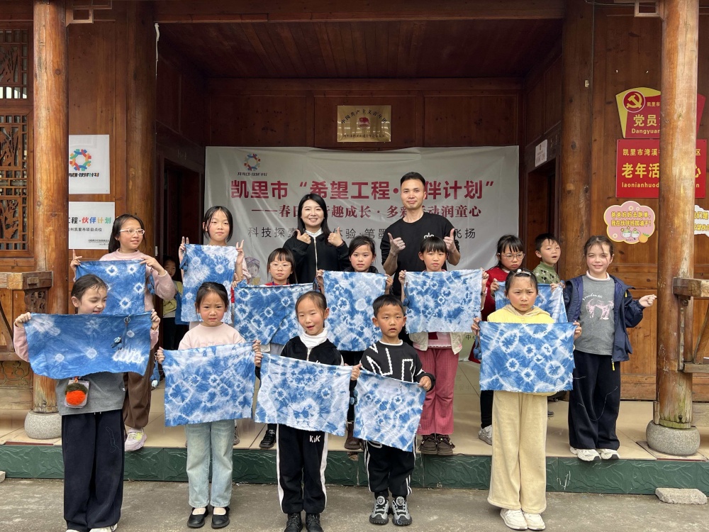当非遗扎染遇上贵州春假 凯里龙井社区小朋友玩嗨了