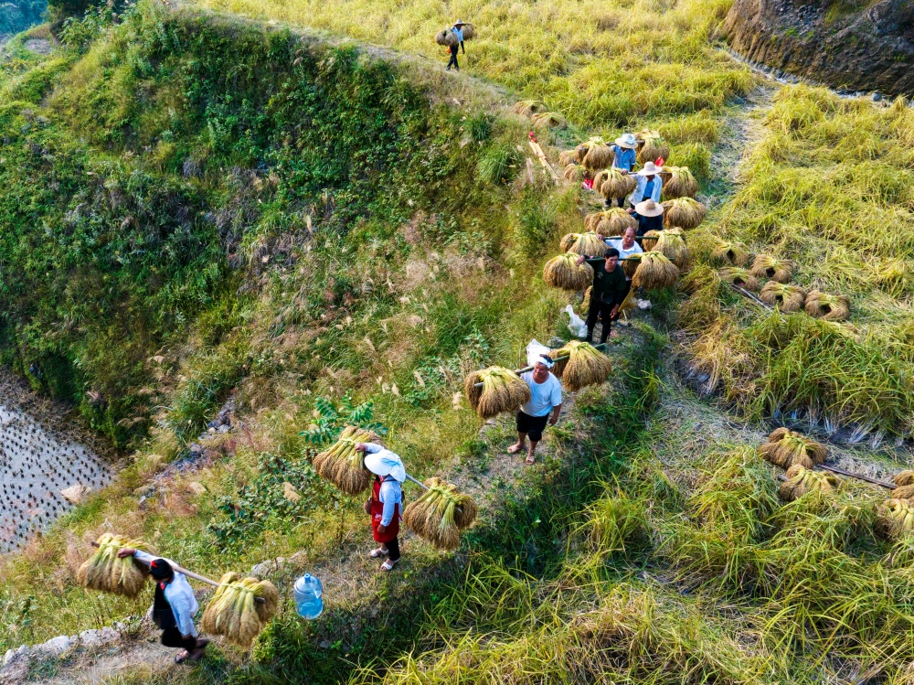贵州从江:侗族同胞喜庆香禾糯丰收