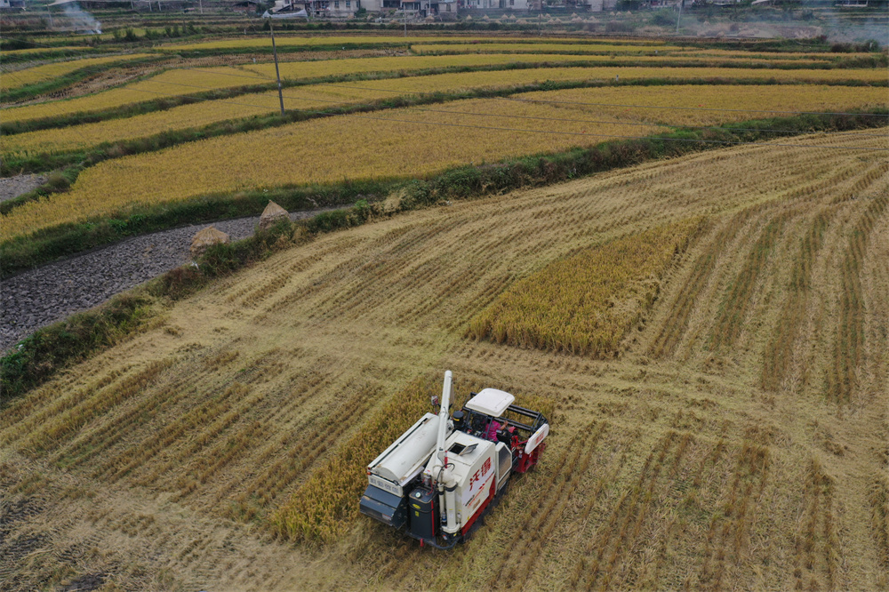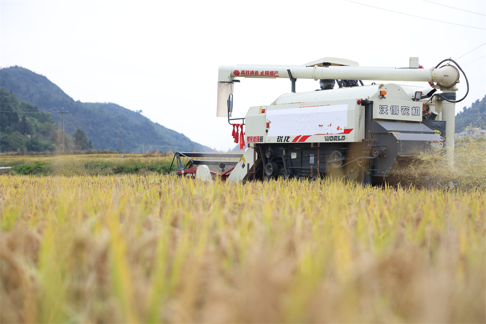 金风卷稻浪,阵阵飘稻香。连日来,麻江县10万亩水稻进入收获期。田间地头,一台台现代化收割机开足马力,在稻田间来回穿梭,脱粒、排草一气呵成,将稻谷收割归仓。
