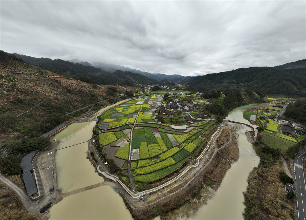 近日来,贵州省黔东南苗族侗族自治州榕江县的油菜花竞相开放,金灿灿的油菜花与民居、河流、群山相映成趣,构成一幅幅美丽的春景画卷,吸引八方游客纷至沓来,享受美好春光。