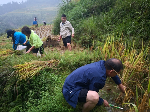 州政协机关党员帮助脱贫攻坚帮扶联系点农户抢收稻谷