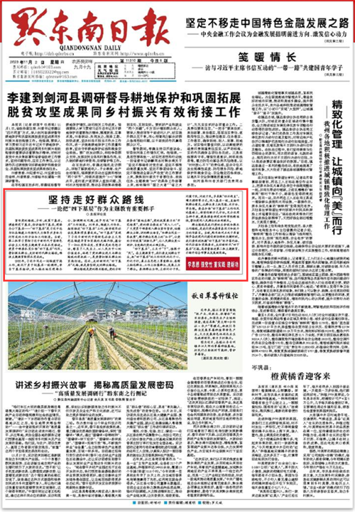 群众路线是我们党的生命线和根本工作路线,是我们党永葆青春活力和战斗力的传家宝。当前,黔东南州正处于昂首阔步奋进现代化建设新征程的关键时刻,我们要深刻把握“四下基层”的丰富内涵、时代价值和实践要求,走好新时代“四下基层”之路,高质量推进第二批主题教育,不断开创各项事业发展新局面。