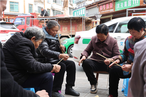 在鼓楼社区,花车的各种部件正加紧完善,社区的大人们也在路边忙于编制龙灯构件。每年的龙灯展演,故事车、花车都是大家手工编制而来,充分展示社区凝聚力和技艺特色。