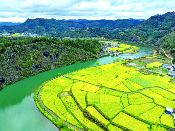 近年来,岑巩县深耕生态治理,以河长制守护龙江河清流,整合项目推进和美乡村建设,让龙江河畔生态颜值持续提升,农文旅融合焕发生机,一幅生态美、产业兴、百姓富的乡村振兴画卷,正在春日的龙江河畔徐徐铺展。春日时节,岑巩县注溪镇周坪村、思旸镇磨寨村的龙江河畔,春风拂面,美景如画。连片的油菜花田如金色绸缎沿河岸铺展,与清澈的龙江碧水、错落的村寨民居、青翠的连绵山峦相映成趣,勾勒出春日乡村的灵动诗意。