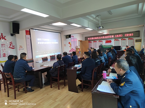 为深入强化党员的身份意识和责任意识,加强党员党性教育,进一步激发党员的政治热情,增强党员的责任感和使命感。3月14日上午,凯里市交通运输综合行政执法大队党支部组织全体干部职工收看教育片《选择》《使命》 。