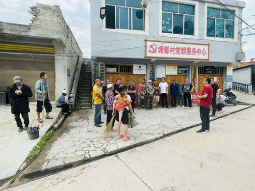 检查后,塘都村“两委”与驻村工作队立即召开会议,于6月9日上午动员村“两委”、驻村工作队、保洁员等在村委会门前,对卫生整洁、生态宜居的和美城乡开展“四大行动”清洁风暴活动。
