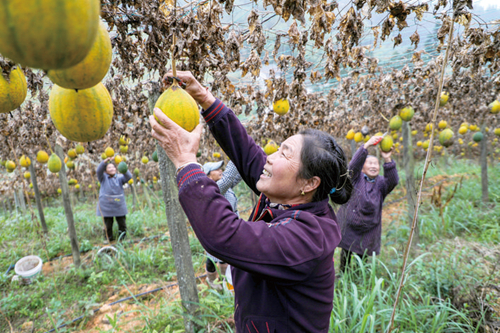 连日来,在天柱县远口镇远口村的瓜蒌种植基地里,村民们忙着采收。