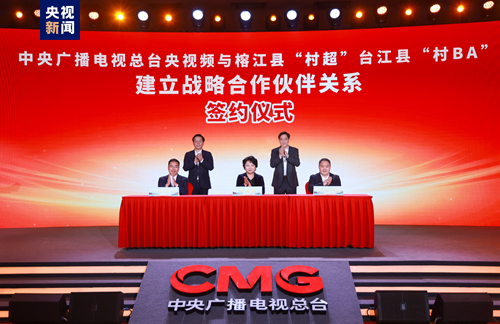 仪式现场,中央广播电视总台视听新媒体中心、贵州省榕江县、台江县相关负责人代表三方签署《中央广播电视总台央视频与“村超”“村BA”建立战略合作伙伴关系框架协议》。根据协议,央视频与榕江县、台江县将在赛事新媒体直转播、融媒体创新项目、开发赛事文旅资源等方面开展深度合作,以“体育”为引擎打造地方文旅新业态,进一步讲好中国体育故事,全面展现乡村振兴美好画卷。