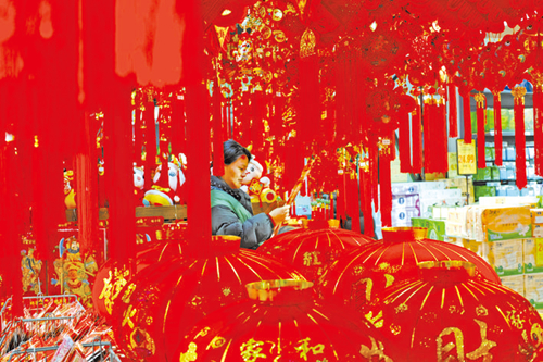 近日在位于岑巩县氵舞水街道的一家超市里,火红的饰品高高挂起,处处洋溢着浓浓年味。