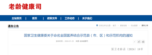国家卫生健康委日前印发《关于命名全国医养结合示范县(市、区)和示范机构的通知》(以下简称“通知”),经自评申报、省级推荐、专家评审、评估验收、网上公示和会议研究,决定命名北京市海淀区等100个县(市、区)为全国医养结合示范县(市、区),乐成老年事业投资有限公司等99个机构为全国医养结合示范机构。我州三穗县被命名为全国医养结合示范县。