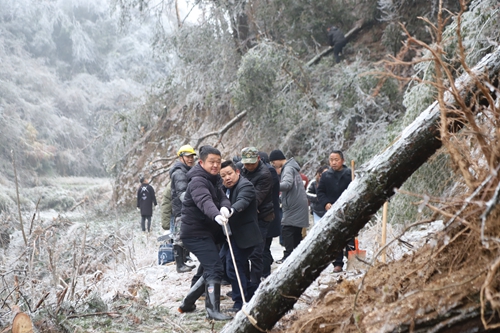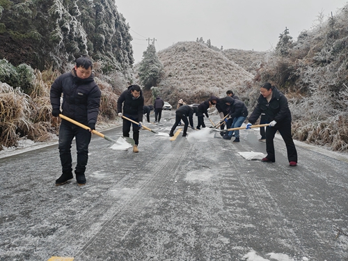 为积极应对此次凝冻灾害,保障群众正常生产生活秩序,镇远县报京乡党委政府第一时间采取有力措施,开展道路巡查、灾情排查、重点人员走访、敲门行动等,全力以赴抗凝冻、保畅通、保民生。
