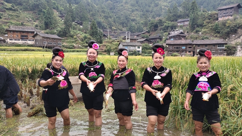 在万物复苏的季节,记者来到了雷山县方祥乡水寨村,村子被群山环抱着,山野田间飘着一层薄薄的晨雾,清澈见底的巫密河静静地从村中流淌而过,一群孩儿在篮球场上你追我赶开心玩耍,村民宋杰与妻子忙着把已经包装好的稻花鱼抬上班车,准备送货,脸上流露出丰收的喜悦……一幅幅和谐宁静的世外桃源景象展现在眼前。