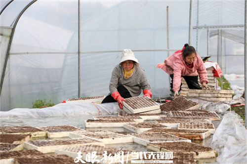 “育苗、出苗,前后几个月时间,我可以领到一万多元工资,其他时间还可以照顾家里,还是很不错的。”杨彩霞一边忙着上盘,一边乐呵呵地说。