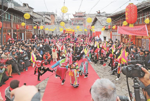 安顺市西秀区鲍家屯村地戏表演引人入胜。卢维 摄(贵州图片库发)