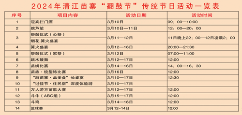 值此重要时刻,经组委会精心筹备与研究决定,2024年3月10日至17日,清江苗寨将迎来为期一周的“翻鼓节”传统节日活动,主题定为“体验特色非遗畅游山水清江”。本次活动将深入挖掘本土文化内涵,巧妙融入旅游元素,力求以文塑旅,以旅彰文,全面推动乡村旅游高质量发展。
