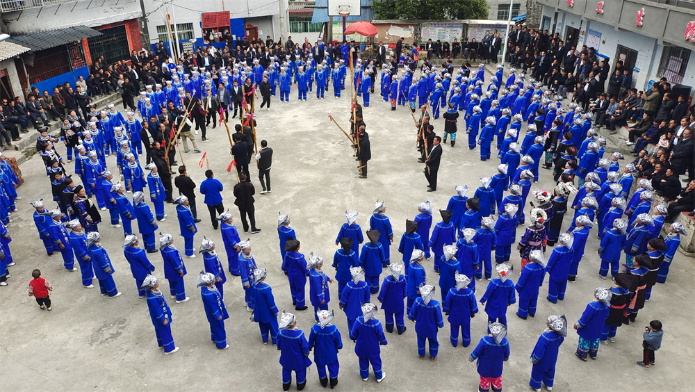 图为:高雍苗族“三月三”,在新合村芦笙场村民同外地游客同跳芦笙舞