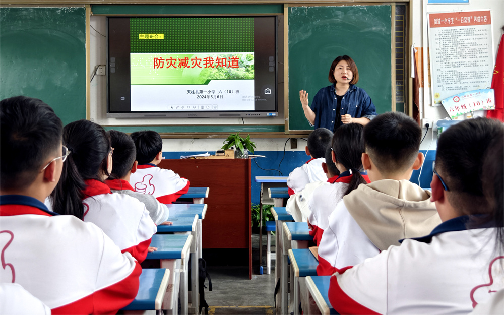 天柱县第一小学班主任向学生讲授防灾减灾知识