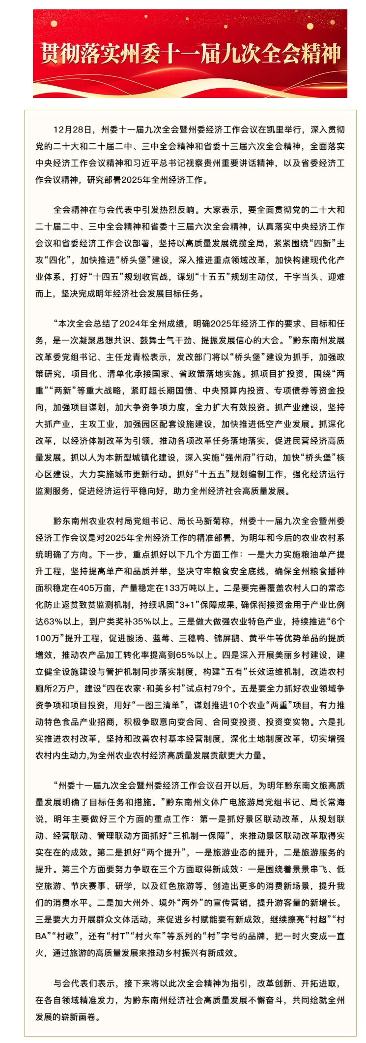 干字当头 迎难而上 谱写中国式现代化黔东南篇章——与会代表热议州委十一届九次全会暨州委经济工作会议精神