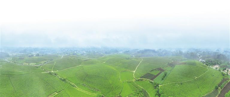 春日,晨曦初露,在遵义市湄潭县的茶山上,薄雾如轻纱般缭绕于连绵的茶垄间,茶树层层叠叠,从山脚蜿蜒至“云端”,嫩绿的芽尖缀满枝头,在阳光下泛着晶莹的露珠。茶农们戴着斗笠,身背竹篓穿行于茶垄间,采摘这一季春酝酿的清香滋味。