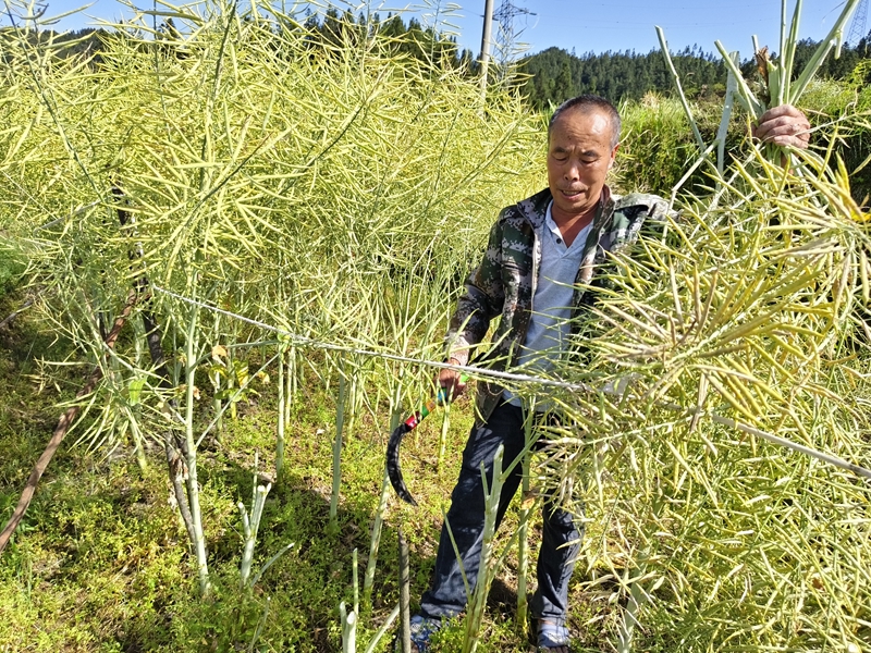 “油菜收割后,马上就种稻谷了。今年油菜好,颗粒大,又黑,出油率高,种出来的油不仅够吃整年,还能卖些,也增加了不少收入哩。”寨霞村村民龙开武乐呵呵地说道。