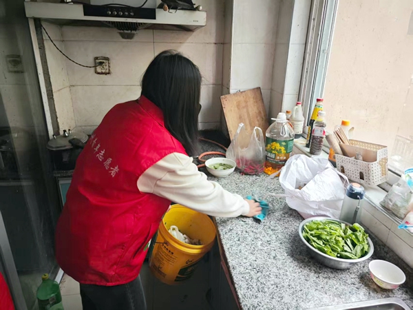 叙谈之后,志愿者们积极主动拿起扫帚、抹布等工具,帮助老人们打扫家里卫生,大家分工协作、干劲十足。