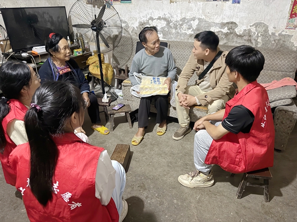 在老人家中,志愿者们与老人促膝而坐、拉家常,细致询问他们的生活起居与身体健康状况,认真倾听老人的心声与需求,并送上大米、食用油、鸡蛋等慰问品以及诚挚的节日祝福,叮嘱老人们注意防寒保暖,保重身体。