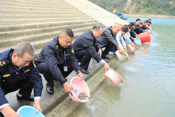秋高气爽,碧波荡漾。在柳川镇码头,工作人员在专业人员的指导下,将经过严格检疫、体格健壮、活力充沛的40万尾鲢鱼和36万尾黄颡鱼,分批缓缓投放到清澈见底的水中。