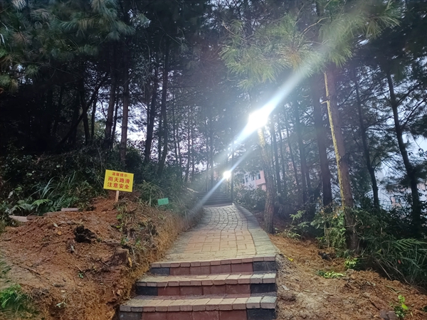 点亮园区及游园路。市公共照明管理中心化身“灯光师”,累计安装各类路灯24盏、LED射灯18盏、灯笼1对,照亮了游客的登山步道和打卡点,让夜晚的游园之旅安全、亮堂。