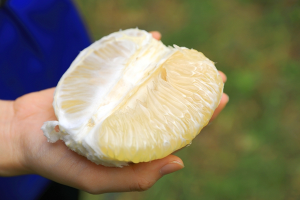 “别家的柚子我们也吃了,感觉都没有这里的好吃,水灵灵的,最喜欢它带点微微苦,清爽不甜腻,所以再远我们都来,一来就是三四个车。每年都打三四百斤,分享给亲戚朋友,年年他们盼着吃,都讲好吃。”游客甘女士开心地说。
