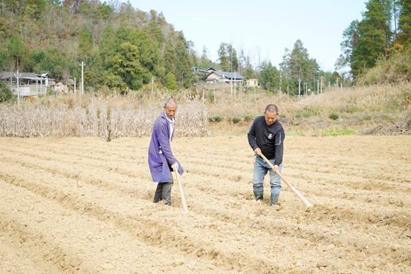 60岁的白长兵,便是这批“产业工人”里的一员。他正熟练地用锄头为太子参覆土,动作一丝不苟。