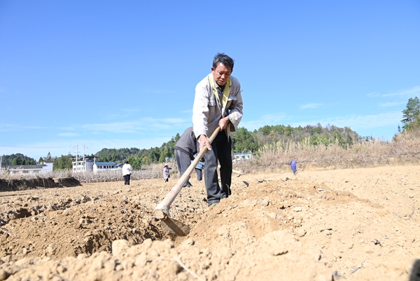 “垄面要像‘瓦背’般中间隆起,两侧沟渠要挖深,排水才顺畅!”田间地头,技术员石如平正手把手教学。
