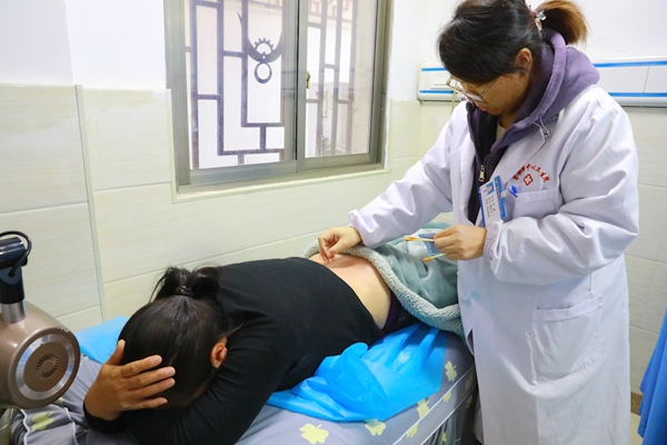理疗室里,医生正全神贯注地为务工人员李仲妹进行针灸治疗。银针精准刺入穴位,旁边的诊疗床上,医护人员手持玻璃罐,熟练地为另一位患者完成拔罐操作,还不时俯身询问:“这个力度合适吗?有什么不舒服要及时说。”这样的场景,如今每天都在这个乡村服务点上演。