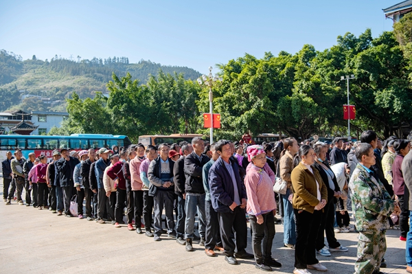 从江县在县政府广场举行2025年东西部劳务协作有组织输出“专业收割队”活动仪式,冬季首批470余名外出务工人员乘坐免费“就业直通车”前往广东、广西等地从事甘蔗收割工作。
