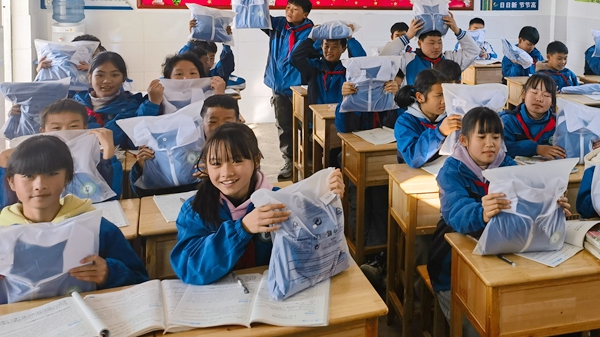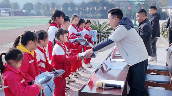 企业的善举得到了两所学校师生的热烈响应与衷心感谢。捐赠现场,孩子们身着崭新的校服,脸上绽放着灿烂的笑容,眼中满是喜悦与感动。为表达诚挚谢意,新场小学师生特意制作了“心系教育”牌匾赠予企业,以铭记这份深情厚谊。贤昌中心学校校长表示:“这份捐赠不仅为孩子们带来了冬日的暖意,更以实际行动为他们上了一堂生动的感恩教育课,让孩子们在关爱中学会感恩、懂得担当。”