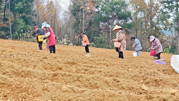 冬意渐浓,霜染田畴,而享有“中国太子参之乡”美誉的施秉县牛大场镇,却处处涌动着农耕热潮。放眼田野,连片地块规划得整齐划一,药农们三三两两分散其间,开沟、起垄、施肥、下种、覆土,动作娴熟、配合默契,在行云流水的劳作场景里,新翻泥土的芬芳与播种的期盼在田间地头交织弥漫。