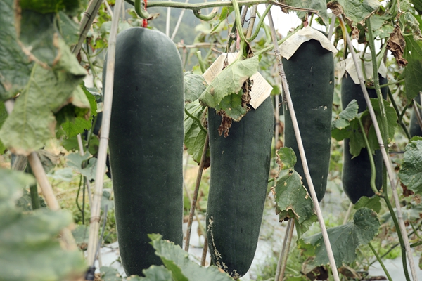 今年李文标新引种的“绿优”冬瓜品种硬度高、耐储运、肉质细腻,亩产可达2万斤左右,除去成本可为他带来超10万元收入。