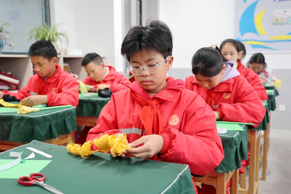 同时在美术老师的悉心指导下,学生们灵巧地将一张张明黄、翠绿的彩纸,制成一朵朵形态逼真的菊花。随后学生们手拿菊花,整齐列队站定,用稚嫩却铿锵有力的声音齐声朗诵《勿忘国耻 强国有我》,让整个教室都浸染在浓厚的爱国氛围中。