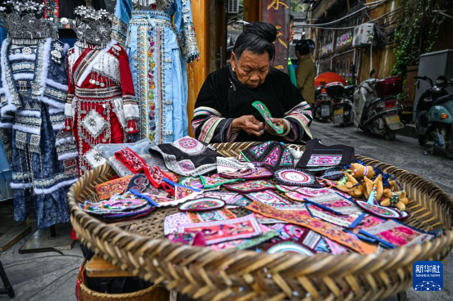 贵州省黎平县肇兴侗寨的村民在刺绣(12月19日摄)。新华社记者杨文斌 摄