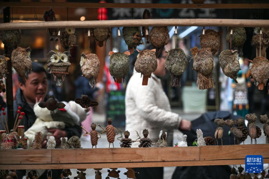 游客在贵州省黎平县肇兴侗寨选购文创产品(12月19日摄)。新华社记者杨文斌 摄